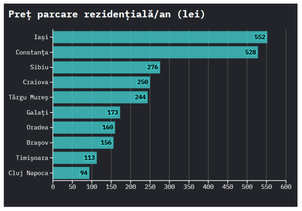 🟠 Clujul are cele mai ieftine parcări rezidenţiale (94 de lei pe an) dintre oraşele mari incluse într-un studiu recent, dar stă destul de slab la numărul de parcări publice versus numărul de locuitori - avem un loc de parcare la fiecare 6 persoane, nici la Medicină nu mai e așa concurență.