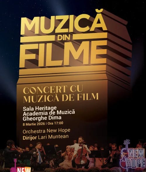 🎼 Concert cu muzică de film - duminică, 8 martie, ora 17, Academia de Muzică, Sala Heritage (str. Bucium 2) - bilete