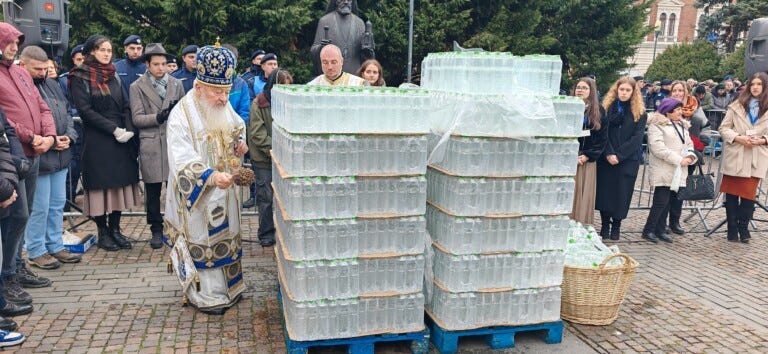 🟠 Mitropolitul Andrei a sfinţit şi a împărţit 15.000 de sticle de apă clujenilor prezenţi la Slujba de Bobotează. Un gest plin de înţelegere şi compasiune, la cât s-a băut de sărbători.