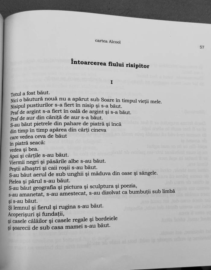 🟠 Totul a fost băut. E concluzia inventarului de după sărbători, dar şi un vers al marelui poet Ion Mureşan, omagiat joi, 9 ianuarie, la 70 de ani, de o sală arhiplină la Teatrul Naţional din Cluj-Napoca.