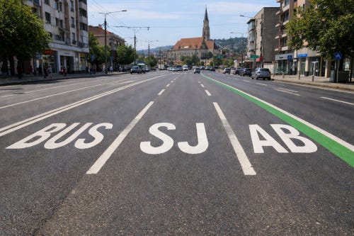 🟠 Emil Boc a anunţat „prima revoluţie a mobilităţii la Cluj-Napoca” - bandă dedicată pentru transportul în comun din Zona IRA (capăt de Mărăşti) până la viitorul Spital de Urgenţă din Floreşti. Adevărata revoluţie ar fi însă crearea unor benzi dedicate pentru şoferii din Alba şi Sălaj.