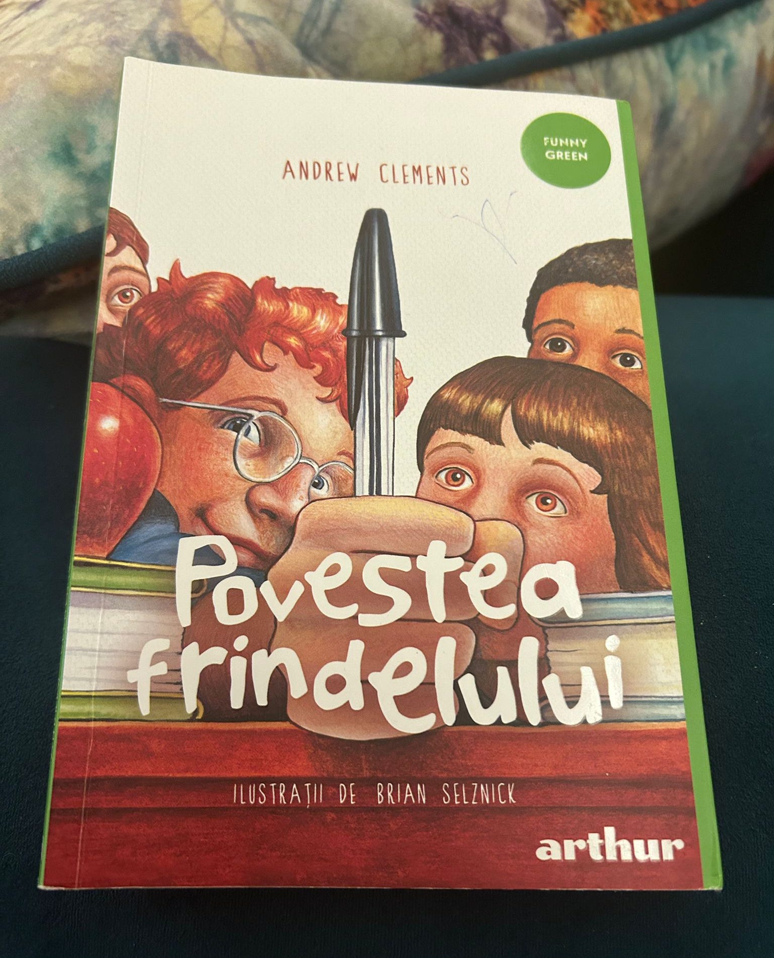 "Deci în carte este vorba de un băiat Nick din clasa a cincea care a inventat un cuvânt nou frindel care înseamnă pix. Profesoara lui Nick, doamna Granger, care este profesoară de dinainte ca primul om să calce pe lună, se împotrivea noului cuvânt frindel, dar elevii în continuare îl foloseau pentru că i-a convins Nick să nu mai zică pix să zică frindel. La un moment dat, a ajuns toată SUA să afle despre asta. Un prieten al tatălui lui Nick i-a oferit să cumpere cuvântul ca să vândă lucruri cu numele frindel. Tom fiind tatăl lui Nick a acceptat şi a semnat.