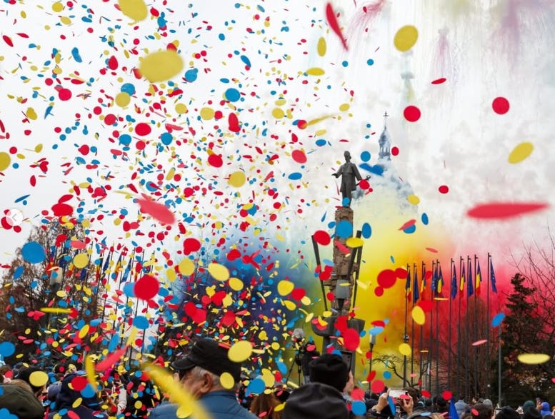 🟠 1 decembrie cu sentimente amestecate pentru suveraniştii români la Alba-Iulia: pe de o parte, sărbătoare şi bucurie pentru unirea Transilvaniei cu Romania, dar şi răcnete şi îmbrânceli pentru că Basarabia a fost smulsă în mod brutal de la sânul ţării iubite, maica Rusia.