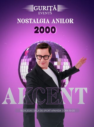 🪩 Concert şi party | Nostalgia anilor 2000 | Adrian Sînă (Akcent) - sâmbătă, ora 19, Sala de Sport din Apahida - bilete
