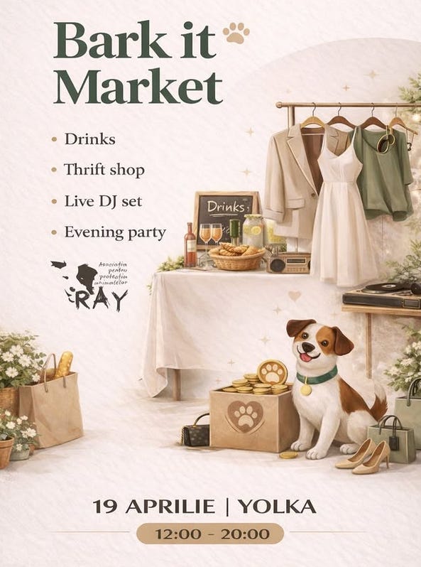 🐶 Târg caritabil şi party | Bark it Market | Asociaţia Ray Animal Rescue - duminică, de la 12 la 20, Yolka (Piaţa Muzeului 21, la etaj) - detalii