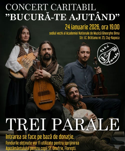 🎺 Concert caritabil | Trei parale - sâmbătă ora 19, Academia de Muzică (sediul vechi, I.C. Brătianu 25), intrare pe bază de donaţie - detalii