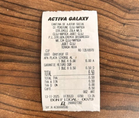 🟠 O apă de 0,5 litri la „Cantina de Ajutor Social” a Primăriei costă 6,5 lei, ajutorul social constând în diferența de 4 lei față de cât costă o apă la cafenelele din apropiere.